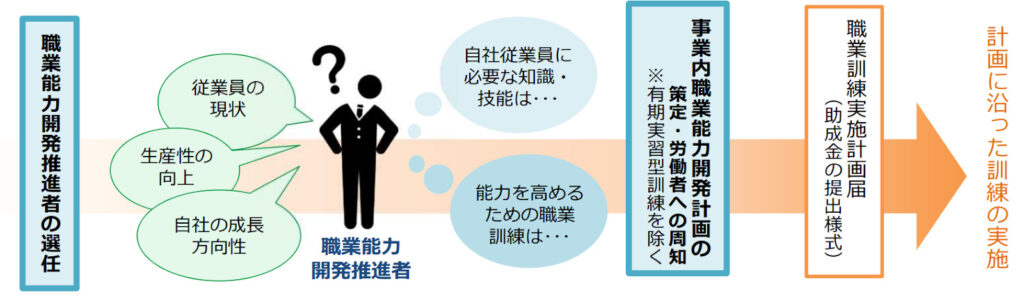 ※1 職業能力開発推進者:従業者の職業能力開発を計画的に企画・実行するための取り組みを社内で積極的に推進する人物。